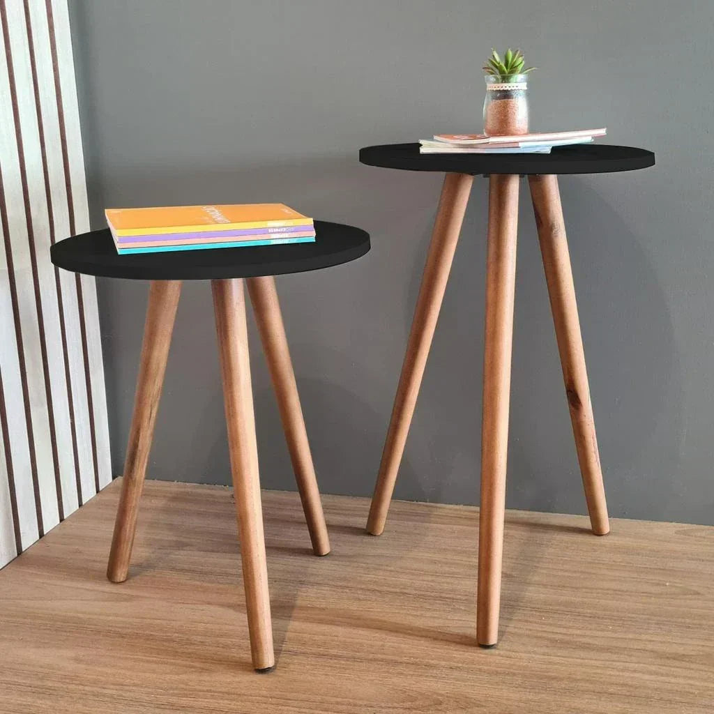 Adicione estilo e funcionalidade à sua sala com este conjunto de mesas laterais redondas. Com design compacto e moderno, elas são perfeitas para otimizar espaços e complementar a decoração.